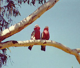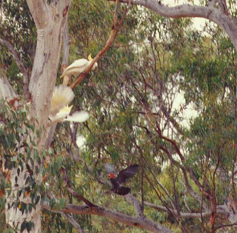 Sulphur Crested Cockatoos & Gang Gang Cockatoo having a discussion |